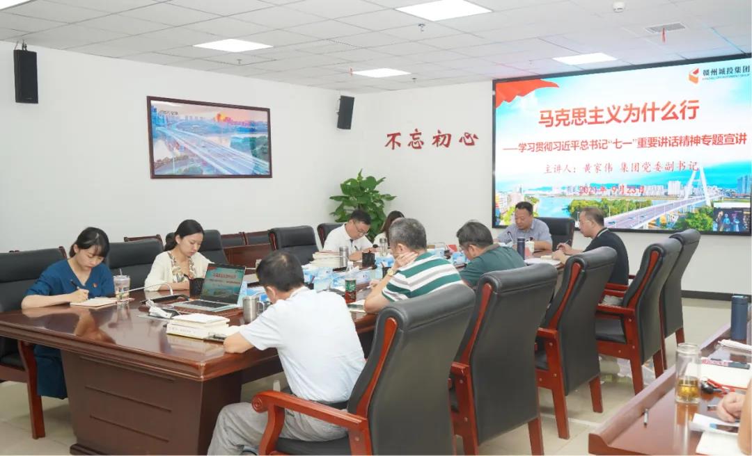 為深入學(xué)習(xí)貫徹習(xí)近平總書記“七一”重要講話精神,9月23日,贛州城投集團(tuán)黨委副書記黃家偉到掛點(diǎn)黨支部專題宣講習(xí)近平總書記“七一”重要講話精神。集團(tuán)機(jī)關(guān)一支部、建筑設(shè)計(jì)院黨支部全體黨員、發(fā)展對象、入黨積極分子共計(jì)40余人參加聆聽。